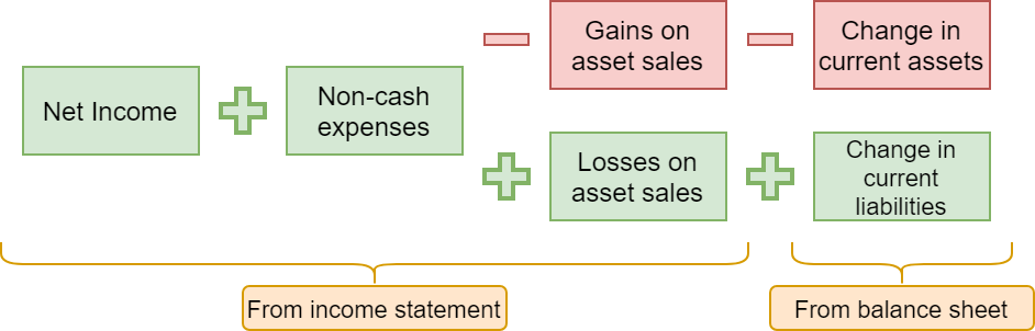 Focus on changes in current assets, changes in current liabilities, and the income statement