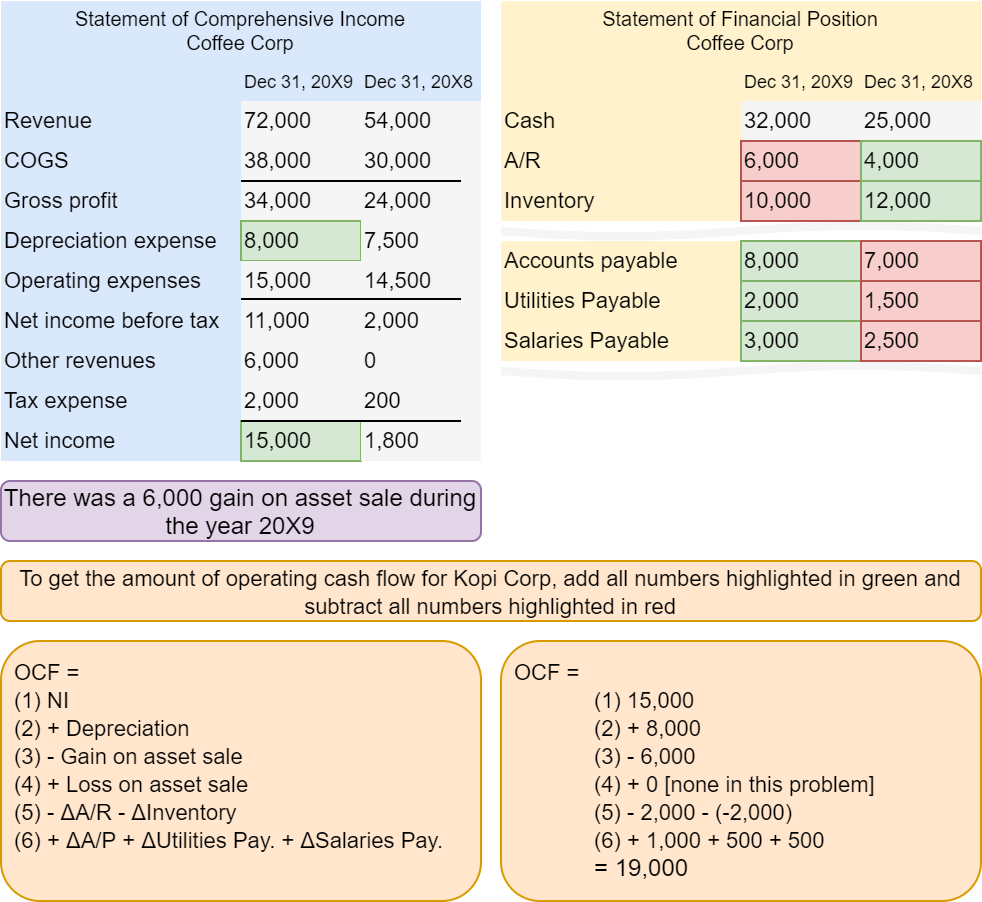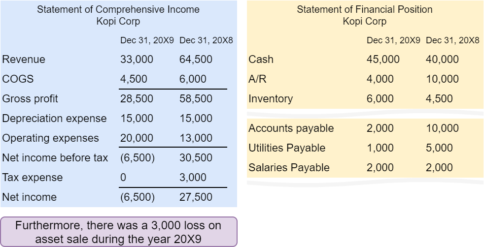 You find the following information in Kopi Corp’s 20X9 and 20X8 financial statements. Based on this information, what is their operating cash flow for 20X9?