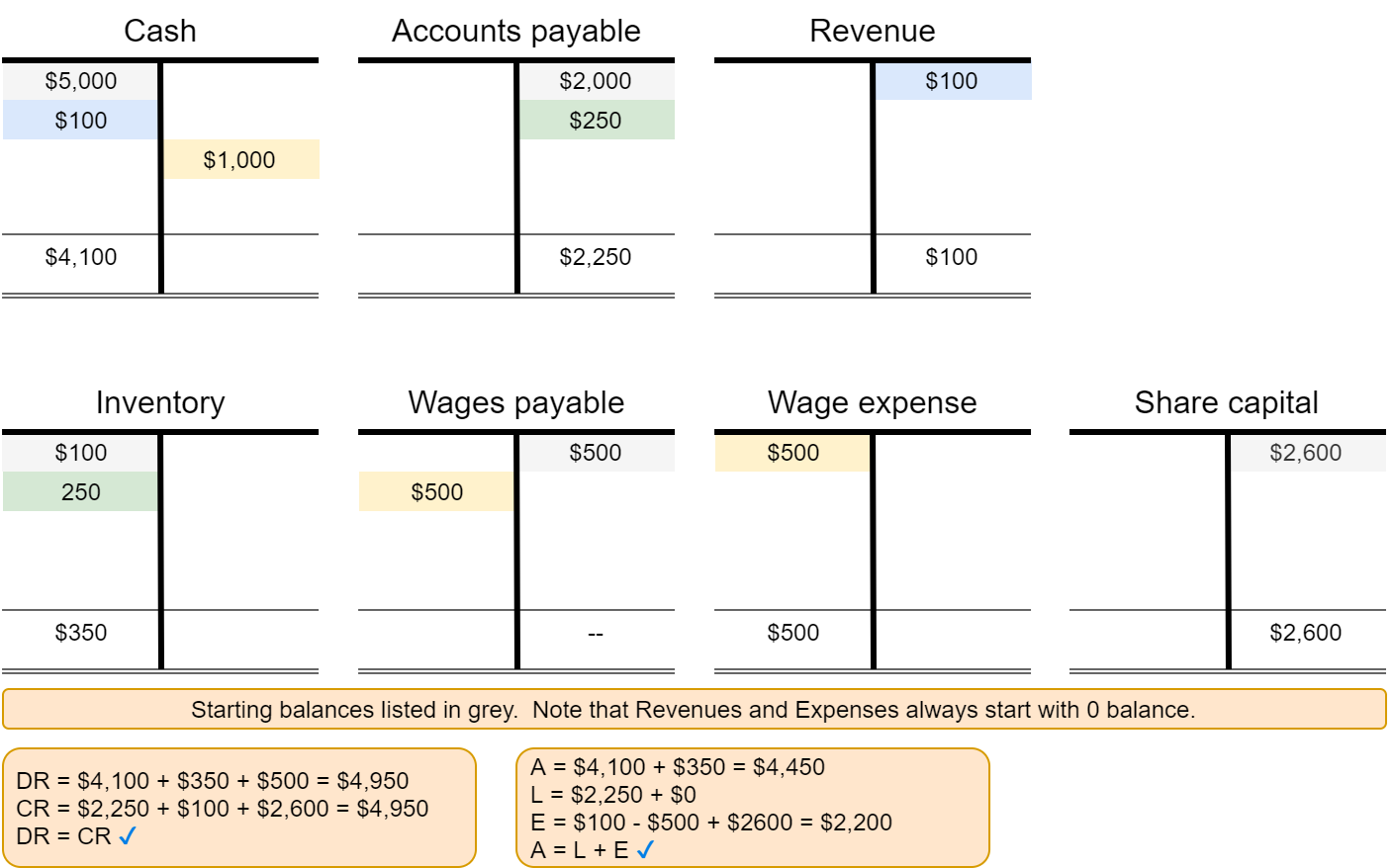 Now we have a robust way to check for mistakes anywhere in our accounting system – just check each equation!