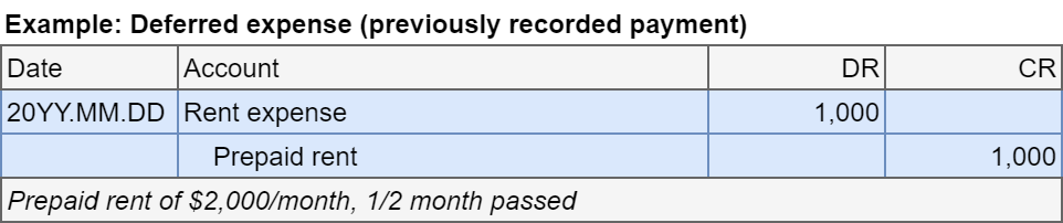 Deferal: prepaid expense