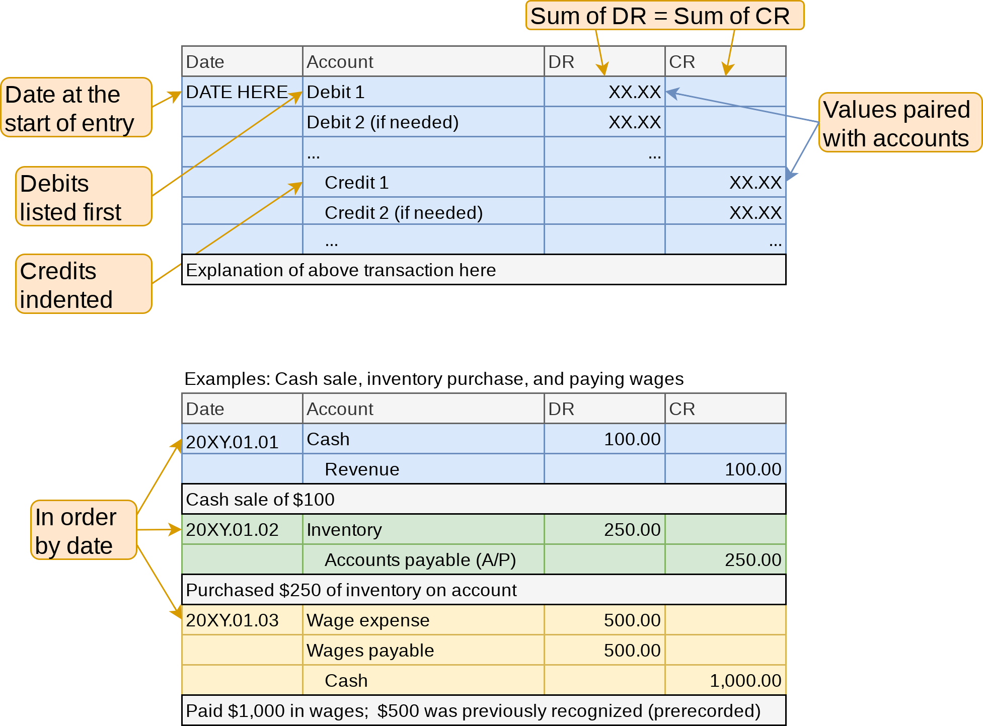 • Always list debits first