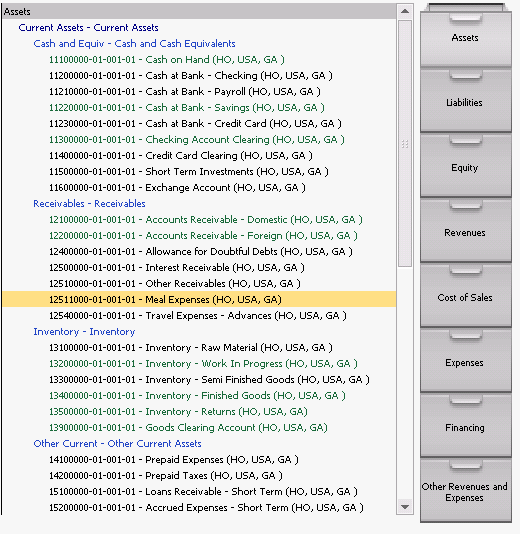 • Chart of Accounts