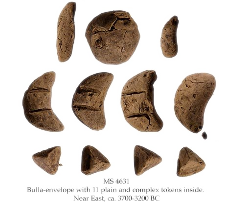 • 8500 BCE: Shaped clay tokens represent commodities