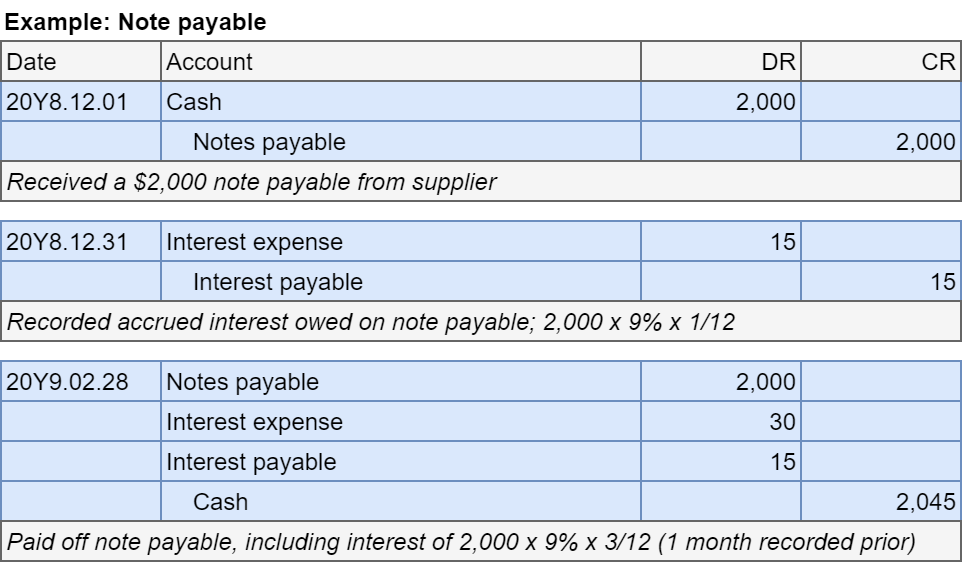 Received a $2,000 note payable with 9% interest due in 3 months payable to our supplier.